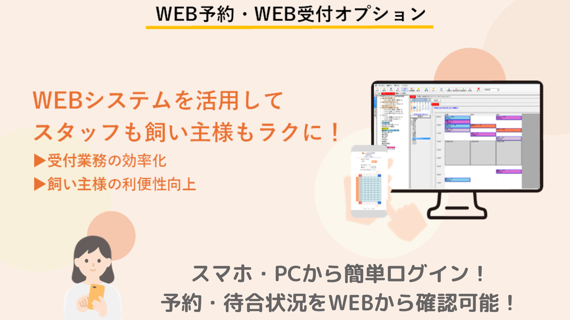 診察室と受付のデータを連動させることにより、獣医師と受付スタッフの連携をサポートします。